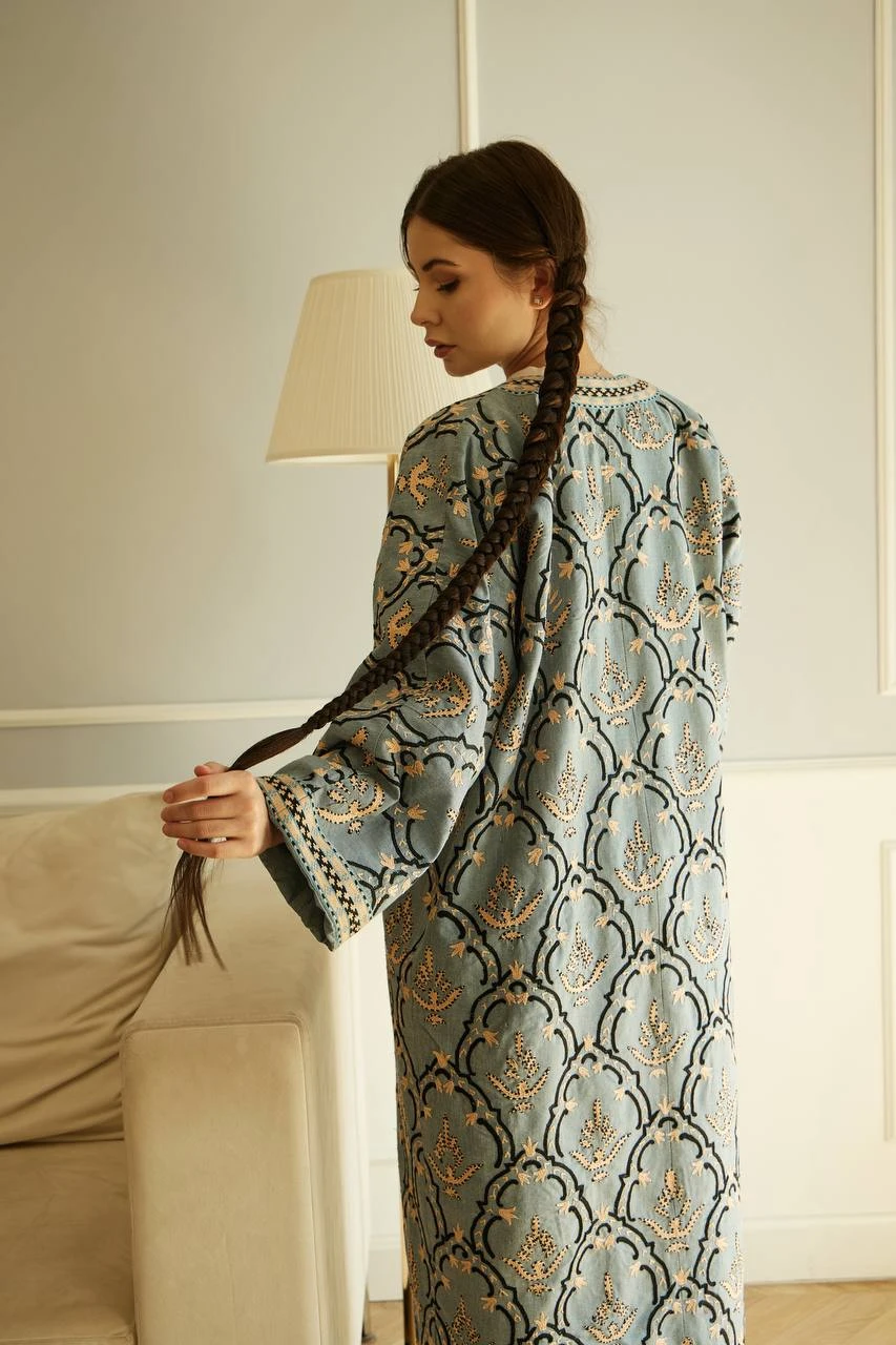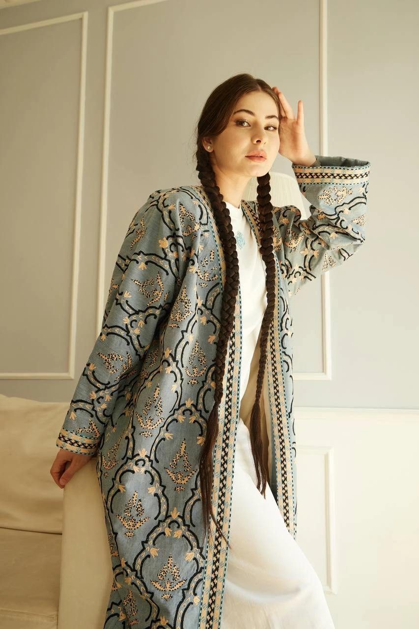 Made from natural fabrics and embroidered with fine silk threads, the chapan feels luxurious on the skin while carrying a deep artistic presence. As a limited collection piece, it holds true exclusivity — unique, meaningful and impossible to recreate in mass production.