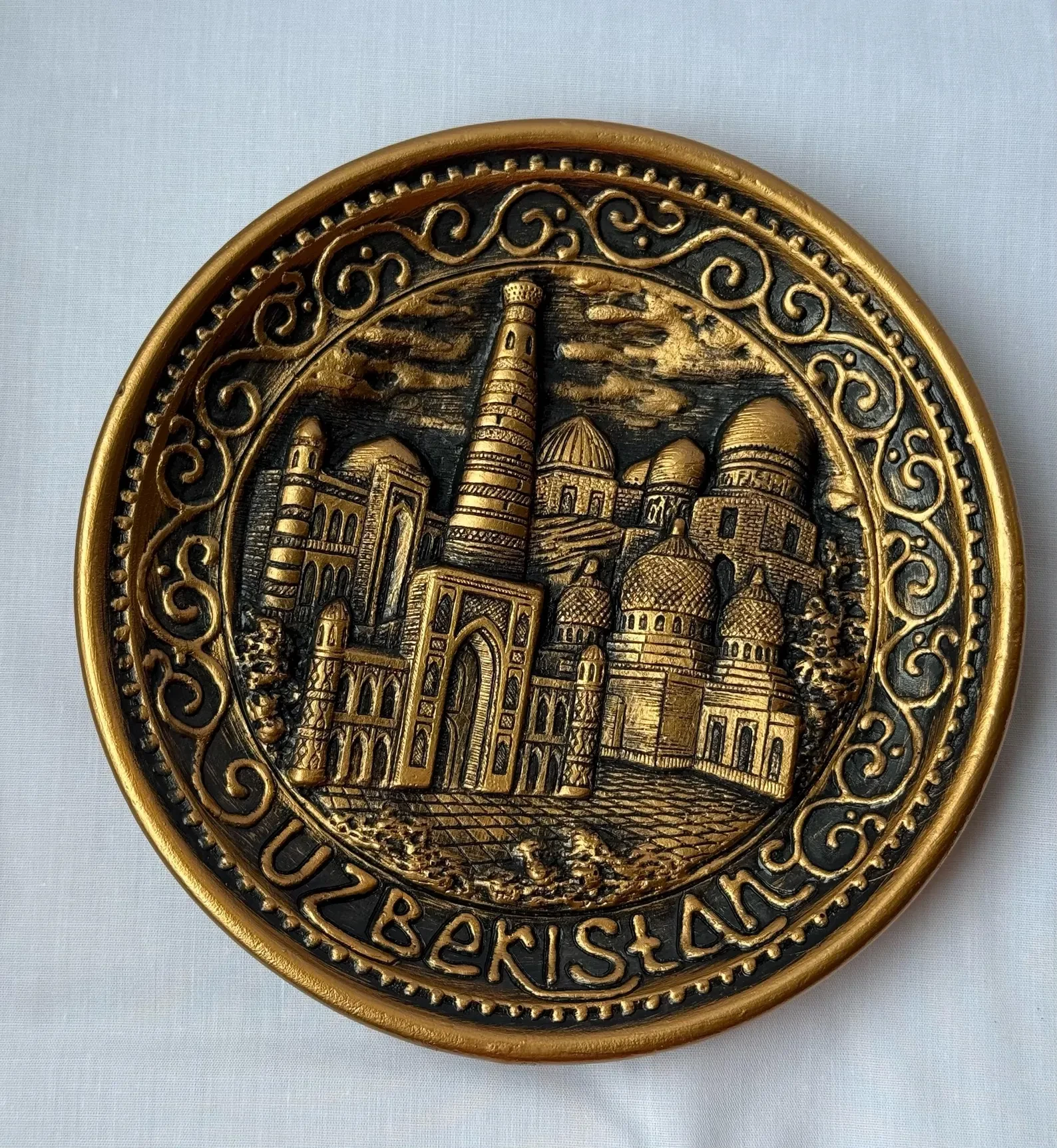 The images show a collection of Uzbek handcrafted ceramic plates and tea/coffee serving sets, created using traditional artisan craftsmanship. The pieces include round decorative plates, segmented leaf/petal-shaped dishes, ceramic mugs, cups, saucers, and teapots, all displayed for presentation. Design & Ornamentation Art style: authentic Uzbek ethnic decorative art Motifs: Paisley (buta) patterns Islimi (curved vine) ornaments Mandala-style florals Geometric star and diamond grid elements Traditional symmetrical layered borders Technique: hand-molded relief carving + hand-painted dotwork (nuqta naqsh) with fine contour decoration Edges: artistic scalloped or curved rims, finished with glossy black or cobalt glaze Inscriptions (where visible): Uzbek calligraphy style ceramic text (e.g., Tashkent) Color Palette Main glaze bases: glossy black, cobalt blue, indigo, and deep green tones Ornament accents: gold, red, yellow, orange, turquoise, and green highlights Surface texture: dense hand-painted dot background for a premium artisanal look Interior surfaces (cups/mugs): smooth natural ceramic clay tone (soft beige/cream), unpainted for contrast Material & Craftsmanship Material: high-quality natural ceramic clay Production: 100% hand-molded, hand-carved, and hand-painted Finish: durable glossy protective glaze coating Heat resistance: suitable for hot and cold beverages or warm/dry food serving Uniqueness: each item is one-of-a-kind, with minor natural variations due to handmade artistry Care note: decorative plates are not recommended for long-term liquid storage unless inner-coated, but ideal for serving dry foods, sweets, fruits, nuts, or snacks Best Uses Tea and coffee serving Home interior and table styling Cultural décor display in cafés, restaurants, hotels, offices, galleries, and craft stores Premium cultural heritage gifting Cultural & Market Value This ceramic collection reflects the rich cultural heritage of Uzbekistan, highlighting traditional ornamentation, symmetry, and artisan skill — perfect for customers who appreciate authentic ethnic handmade ceramics, elegance, and cultural identity in décor.