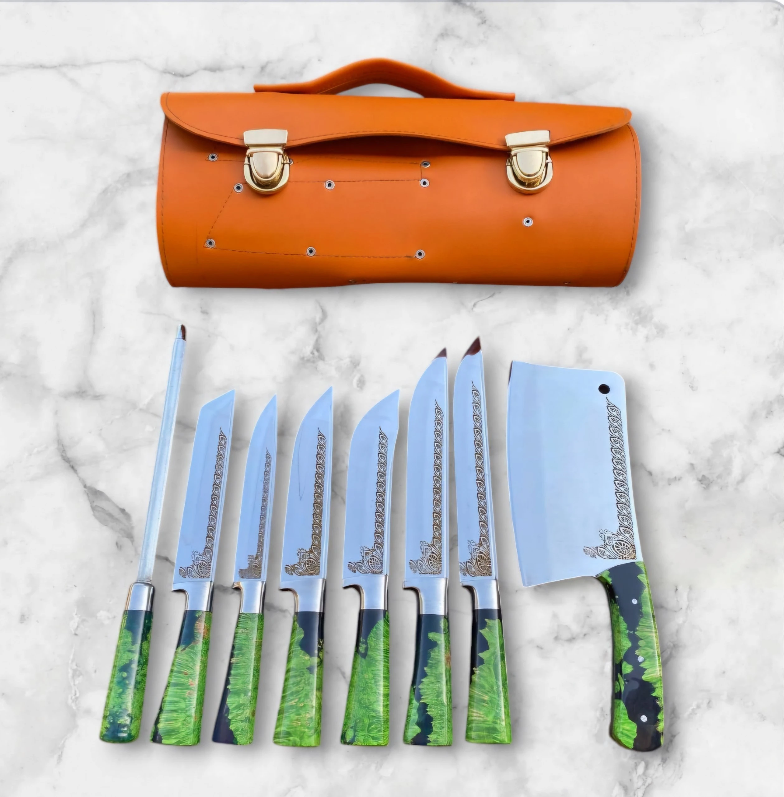 This kitchen set features durable stainless metal valves and natural wooden handles. The set is beautifully crafted to combine functionality and style, making it an ideal addition to any kitchen. The babbitt elements ensure long-lasting performance, while the natural wood provides an elegant touch.