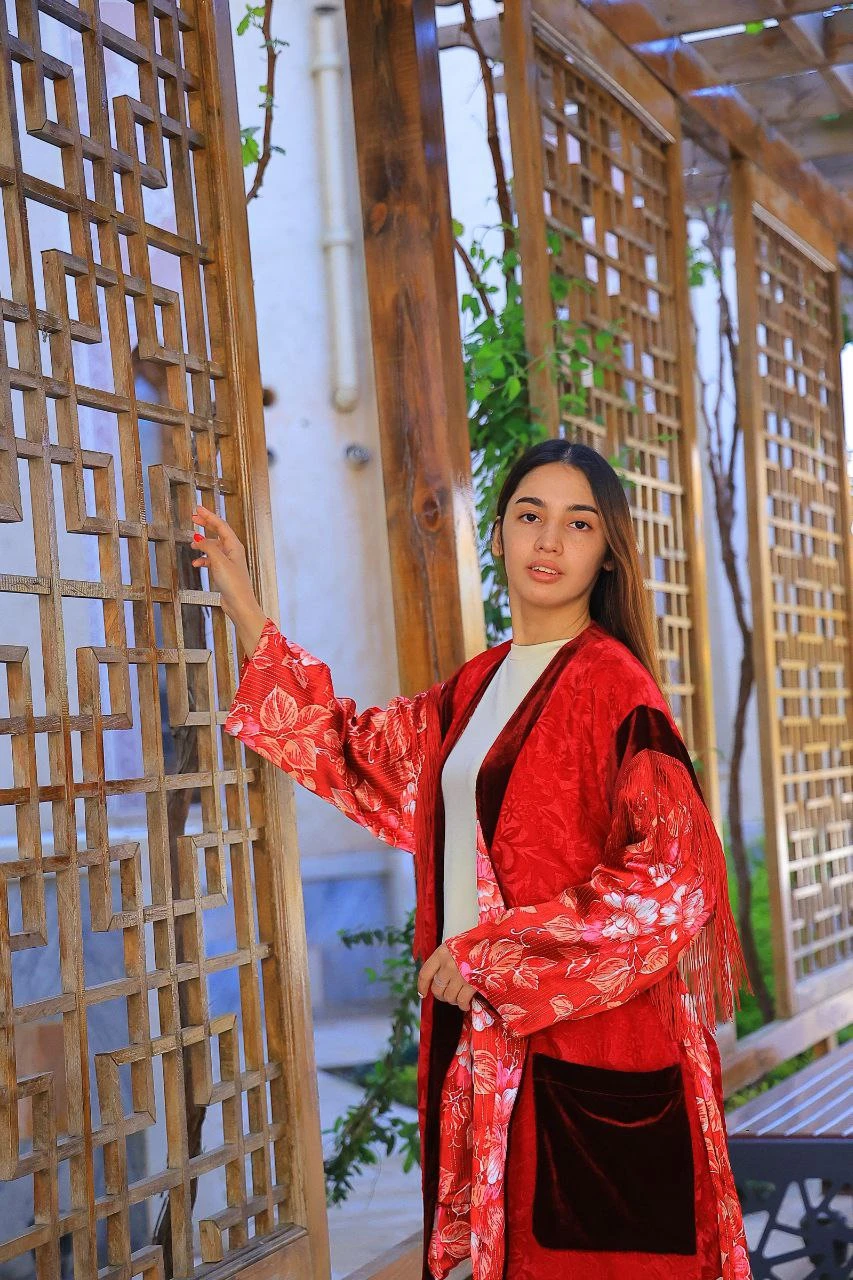 This exquisite traditional Chapan (coat) is crafted in a stylish oversized fit, blending cultural heritage with modern fashion aesthetics. Made using a premium combination of pan velvet (panbarxat), atlas silk, and rare vintage fabrics, it offers a rich texture, luxurious feel, and visually striking appearance.