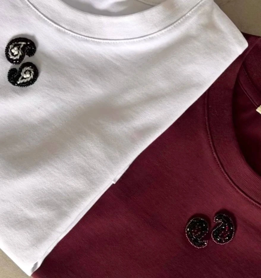 Cut in a clean, sculpted silhouette, the longsleeve feels minimal at first glance — but reveals emotional depth through exclusive handwork. Each motif is embroidered by hand, using delicate beading techniques to bring subtle volume and movement to the surface. The pattern becomes more than decoration: it is a statement of identity, carried close to the body, shaped by the hands of an artisan.