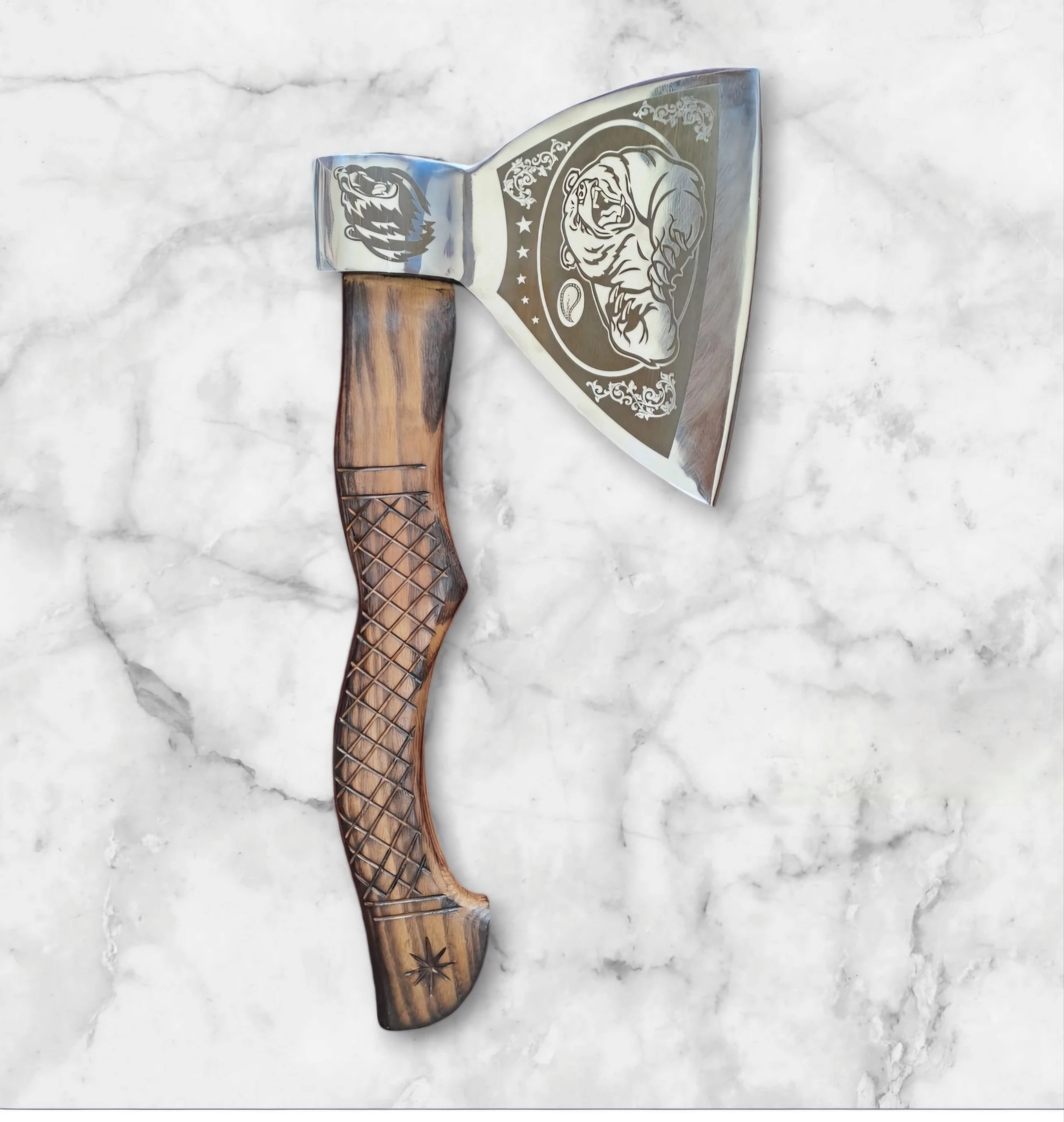 A specialized axe designed for braid-cutting, featuring a rail steel blade and a natural wood handle, offering precision and durability.