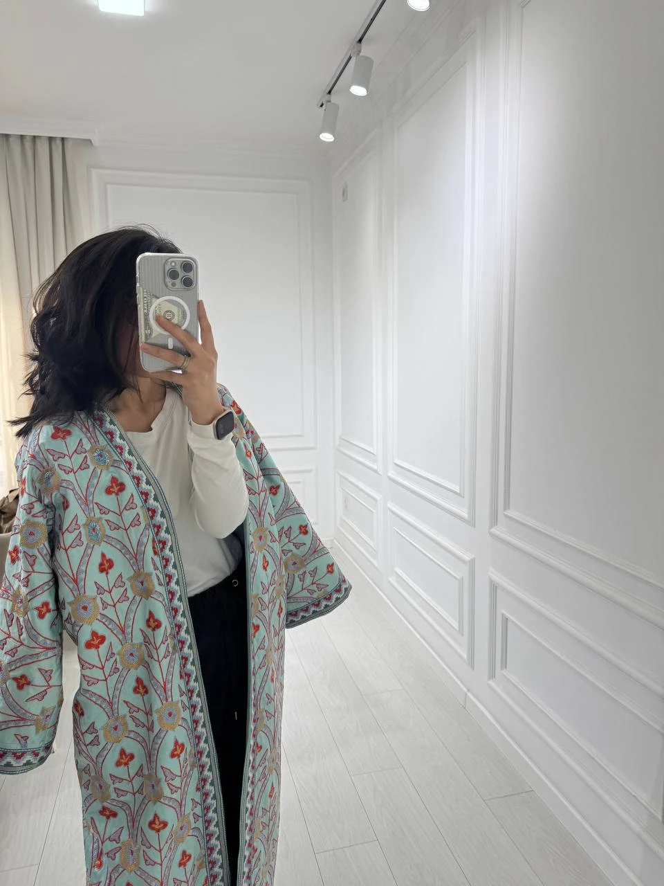 The “Tobadon” chapan is created for special moments — celebrations, cultural events, artistic evenings — or simply for those who see beauty in details and value the emotional value of handmade craft. With every stitch placed by hand, it carries the warmth of the artisan’s work and the heritage of centuries-old needlework culture.