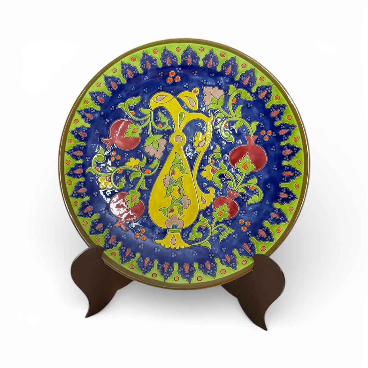 This 32 cm souvenir lagan (traditional Uzbek decorative plate) is fully crafted by hand, reflecting authentic artisanal workmanship. The plate features embossed oriental enamel designs, created using classic Uzbek artistic techniques. Every pattern is carefully shaped and painted manually, making each piece unique. Diameter: 320 mm (32 cm). Crafting method: 100% handmade, hand-painted, and embossed. Style: Traditional oriental enamel artwork, rich Uzbek cultural ornamentation. Purpose: Perfect as a souvenir, wall décor, gift piece, or cultural display item. This lagan carries the spirit of Uzbek heritage, inspired by historic ceramic art and national motifs. It is not mass-produced — it is a real hand-crafted artwork, ideal for collectors and those who appreciate cultural craftsmanship. Key advantages: Unique design on every piece. Made with patience and traditional skill. Strong cultural and decorative value. Suitable for home, office, restaurants, and cultural exhibitions. A meaningful Uzbek souvenir that combines art, tradition, and handmade excellence.